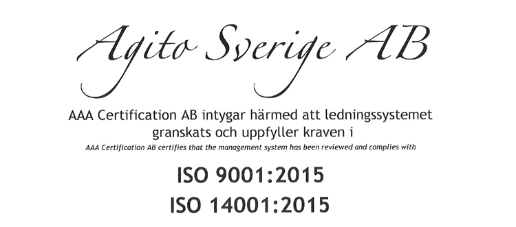 För att kunna leva upp till våra konsulter, kunder och kandidatförväntningar arbetar vi systematiskt med kvalitet och kontinuerliga förbättringar. Agito är ISO-certifierad enligt International Standard for Quality Management, ISO 9001: 2015